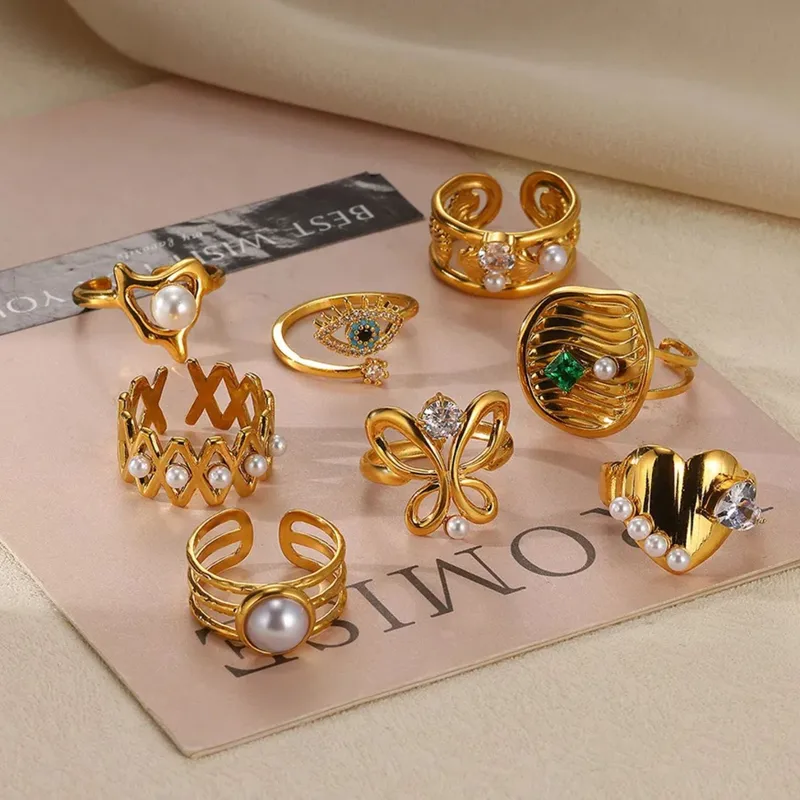 Casual Elegant Simple Style Geometric 304 Stainless Steel Plating Artificial Pearls Women's Open Rings