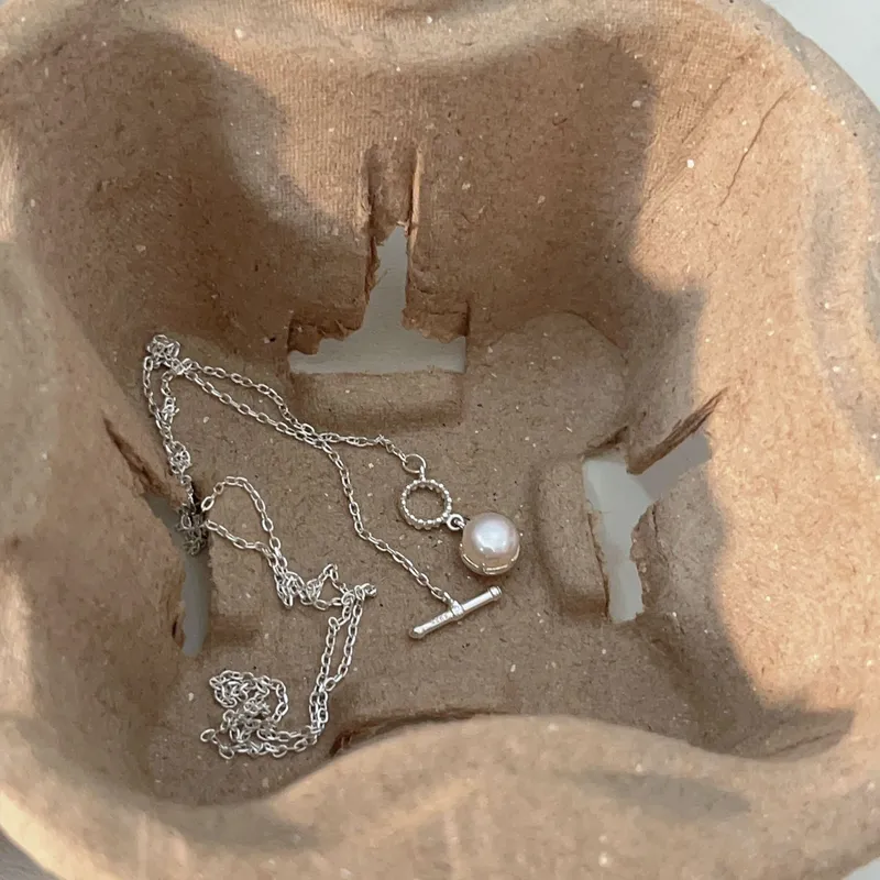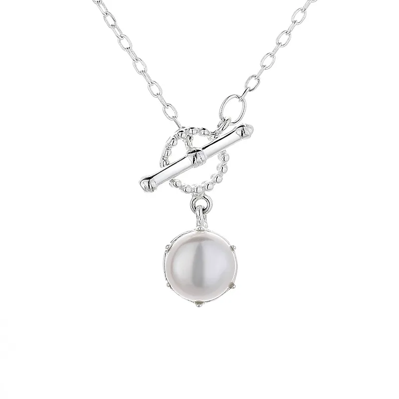 Wholesale simple style korean style geometric sterling silver pearl pendant necklace in bulk