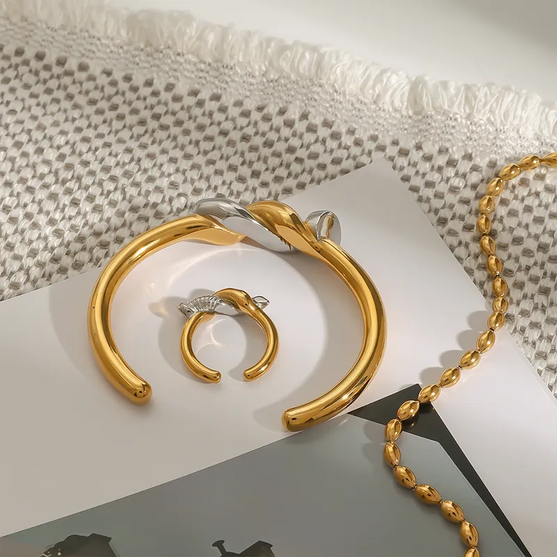 Wholesale Simple Style Nail 304 Stainless Steel Mixed Metal 18K Gold Plated Women's Rings Bracelets