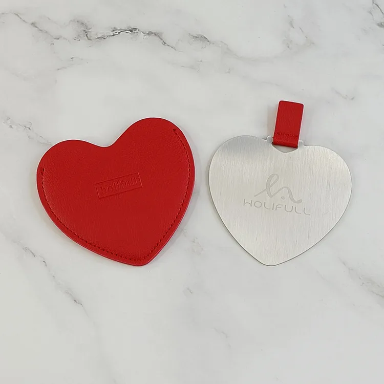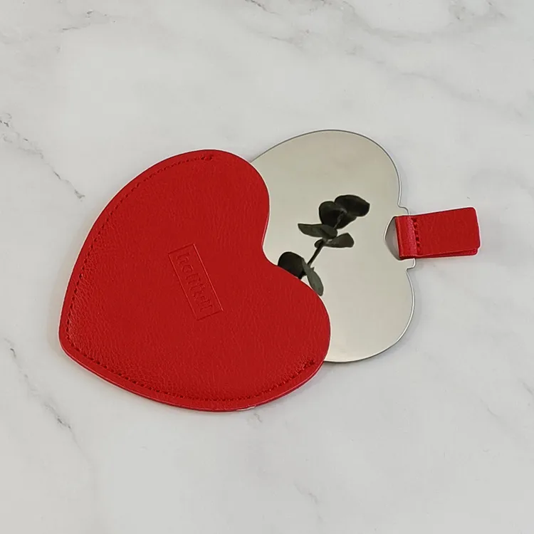 Wholesale Simple Style Heart Shape Solid Color Pu Leather Mirror 1 Piece