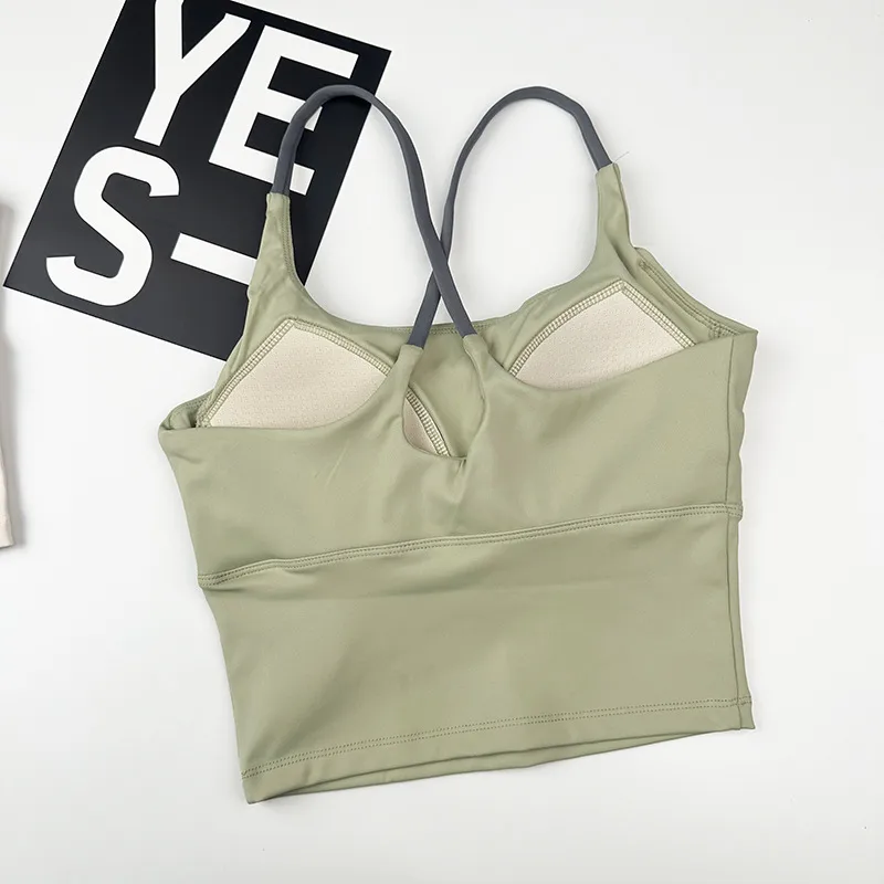 Wholesale Simple Style Sports Solid Color Nylon Cotton Blend Strap Active Tops Racerback Tank Tops