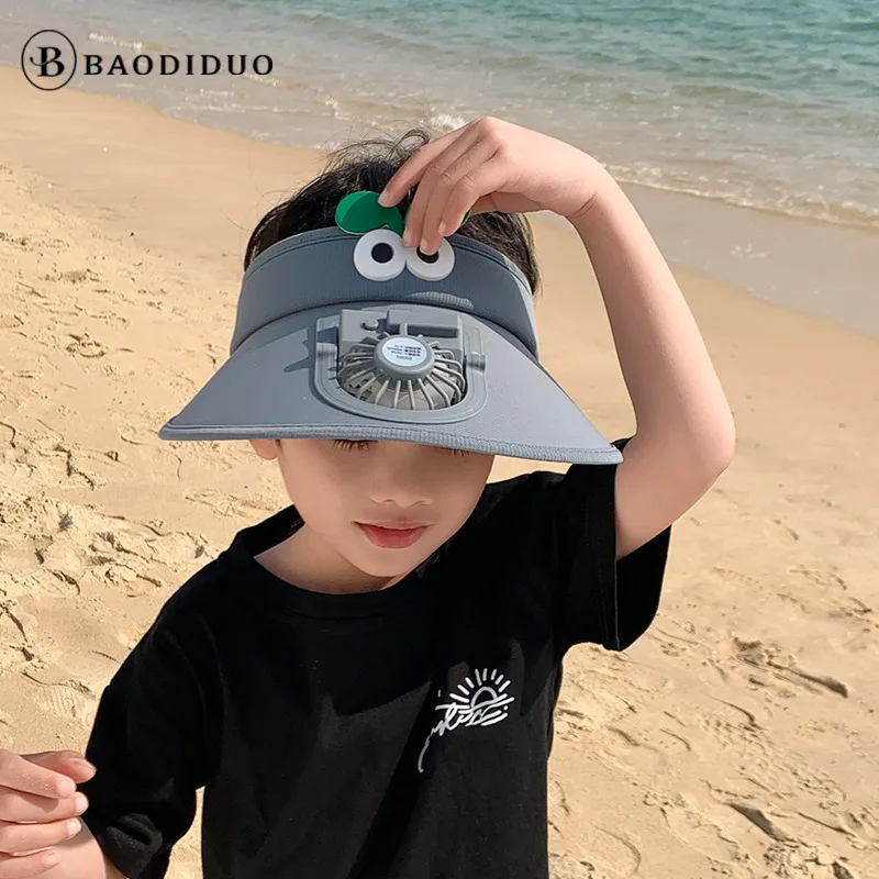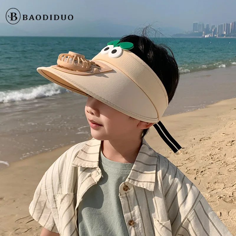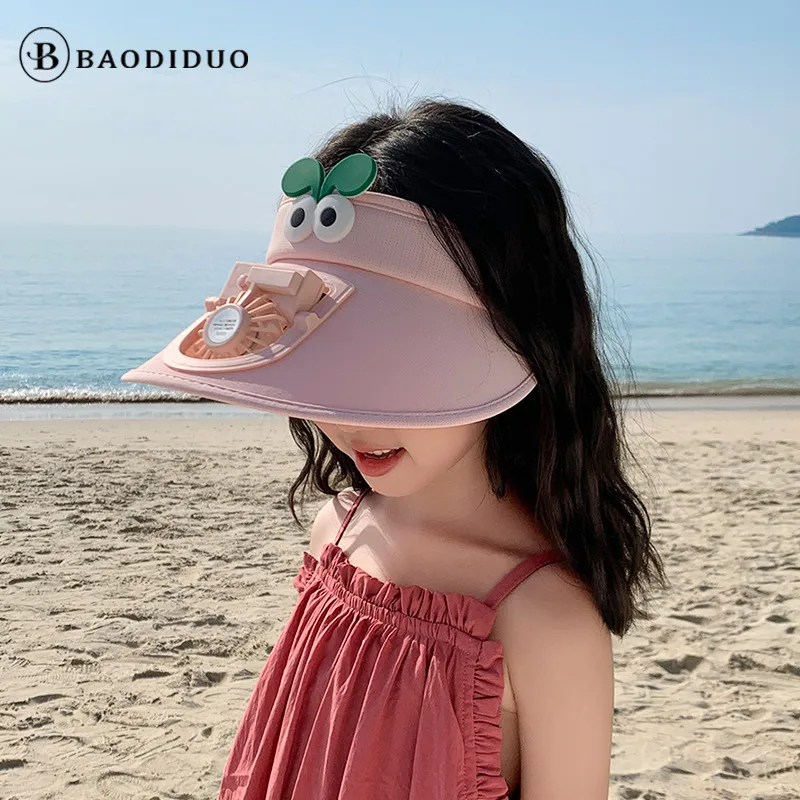 Small Fan Children's Cartoon Empty Top Hat Summer Sunscreen Sunshade Travel Face-covering Breathable Cool Animal Sun Hat