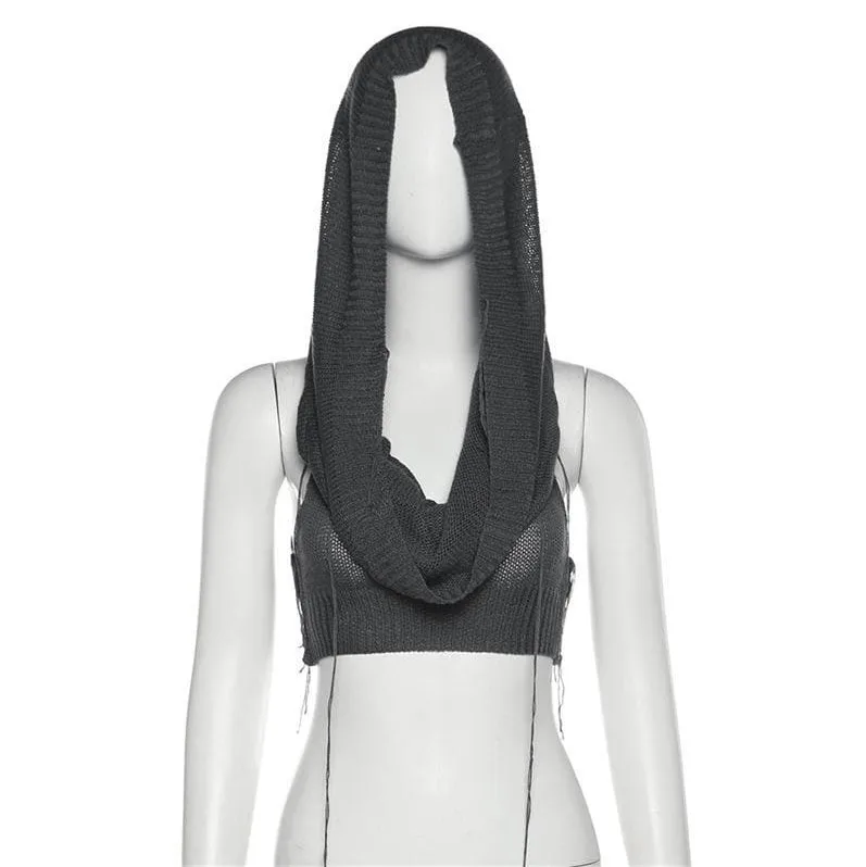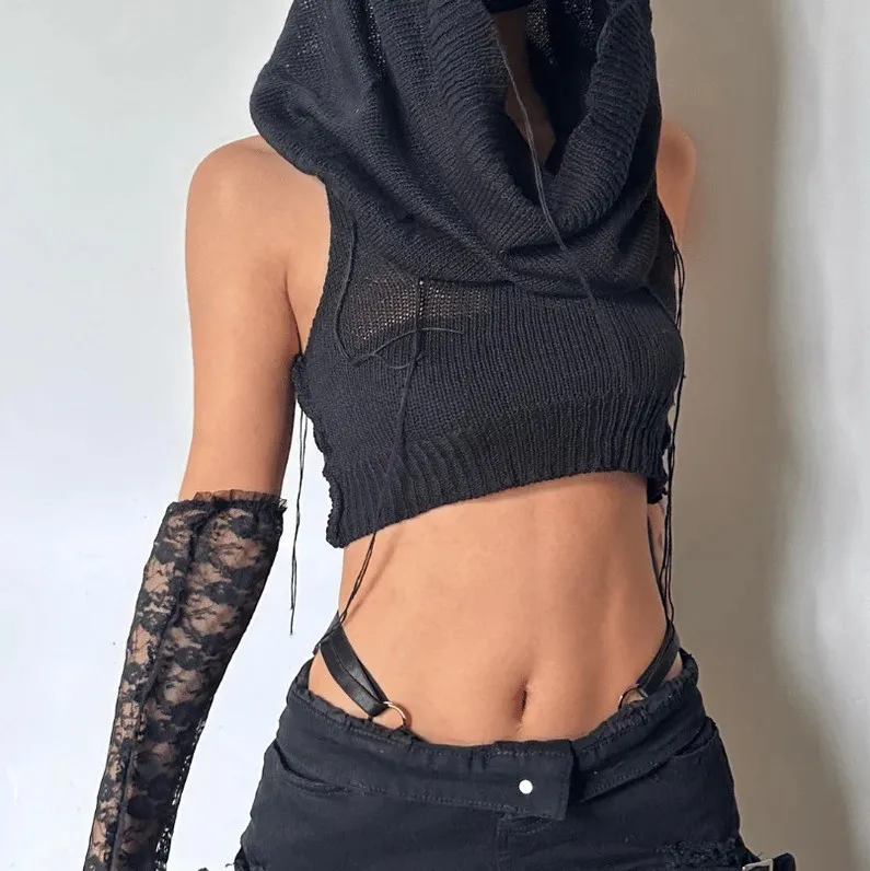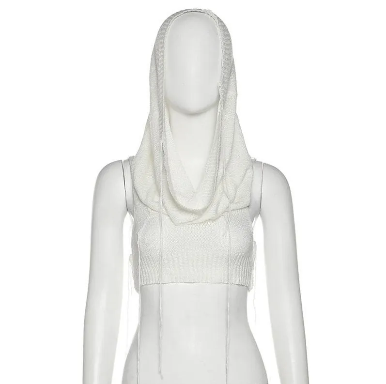 Solid Color Sleeveless Knitted Stitched Hoodie Y2K Revival Fashion Sexy Spice Girl Casual Super Short Hooded Top