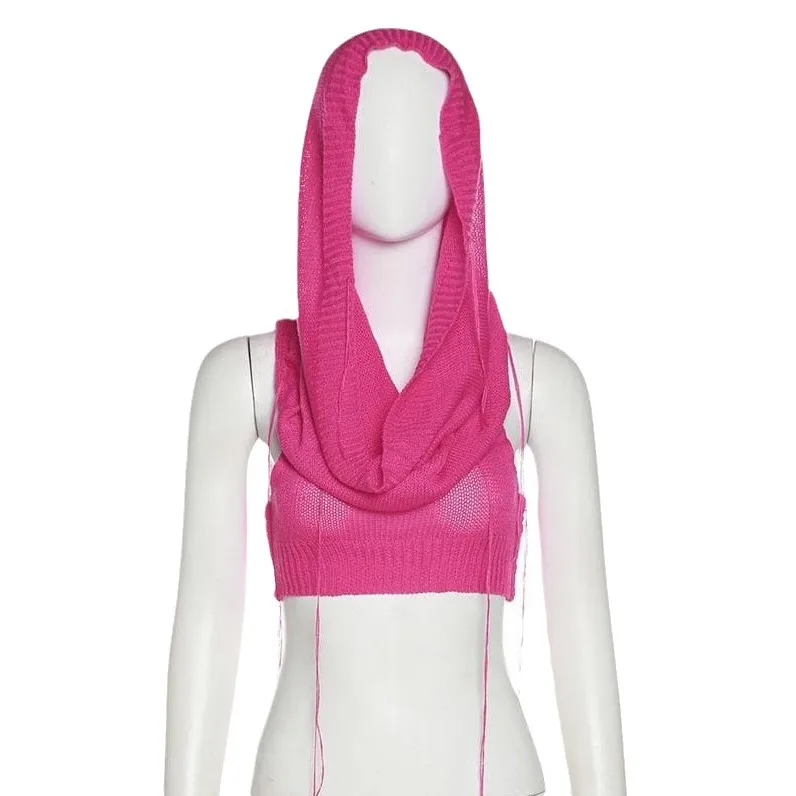 Wholesale Solid Color Sleeveless Knitted Stitched Hoodie Y2K Revival Fashion Sexy Spice Girl Casual Super Short Hooded Top