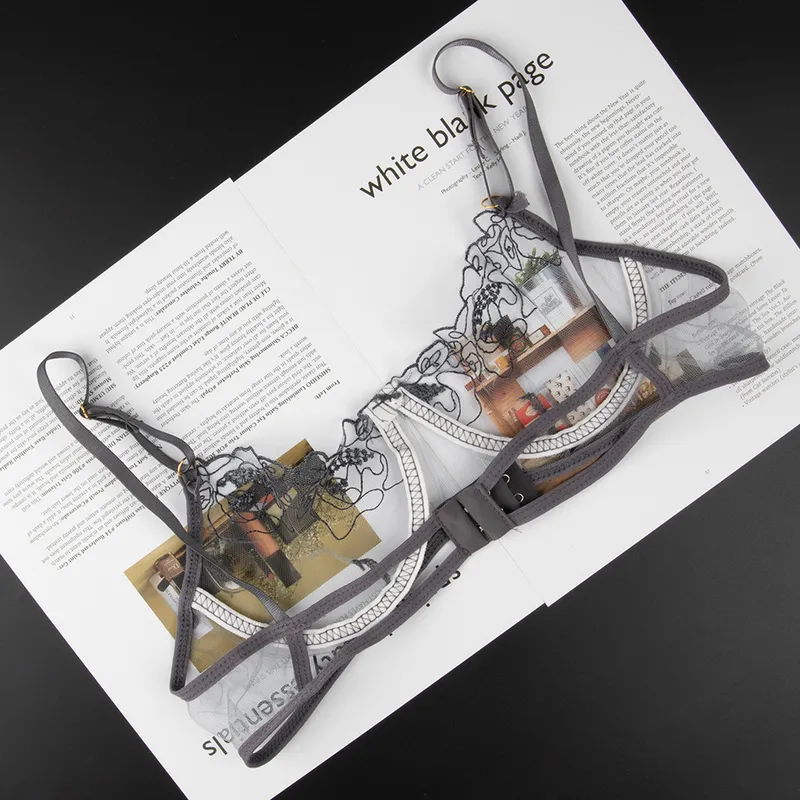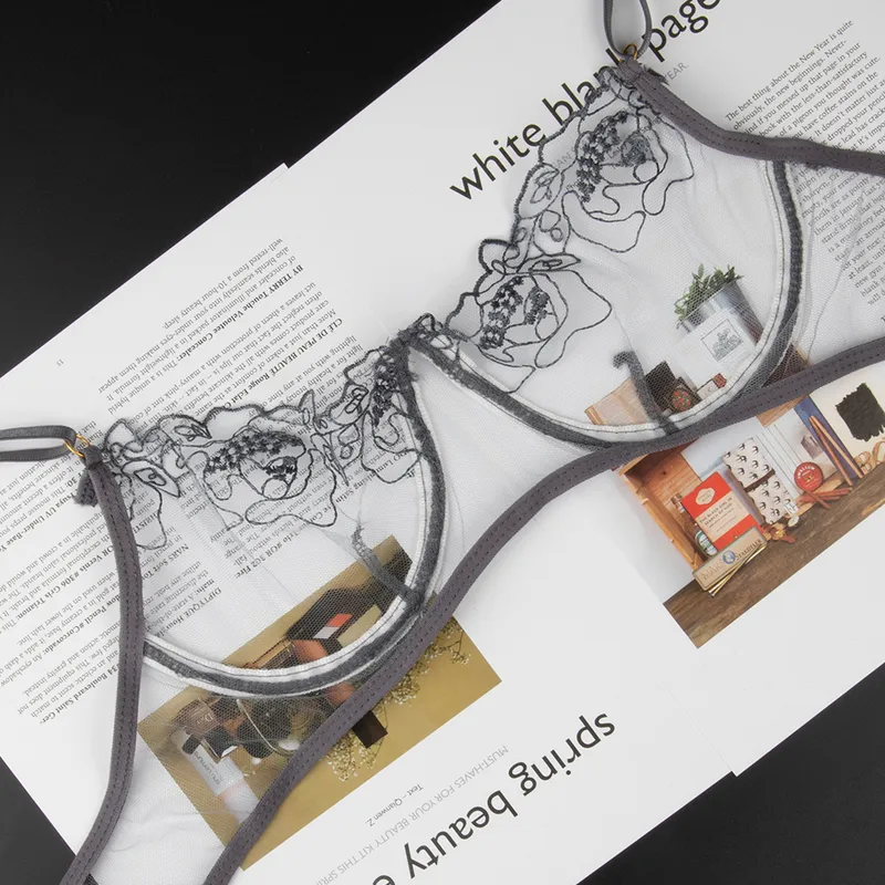 Embroidery Solid Color Underwire Bra Sexy Embroidery Low Waist Thong Sexy Lingerie