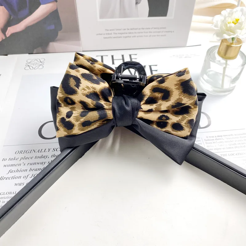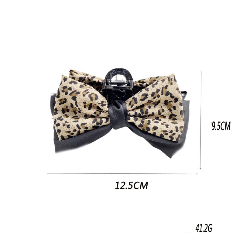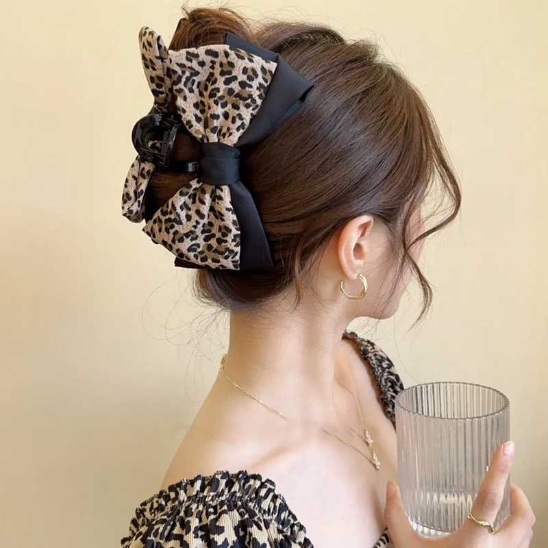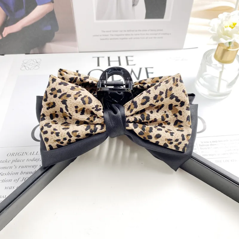 South Korea Dongdaemun Large Leopard Print Advanced Bow Claw Clip Headdress New Elegant Back Head Updo Shark Clip