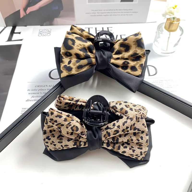 Wholesale South Korea Dongdaemun Large Leopard Print Advanced Bow Claw Clip Headdress New Elegant Back Head Updo Shark Clip