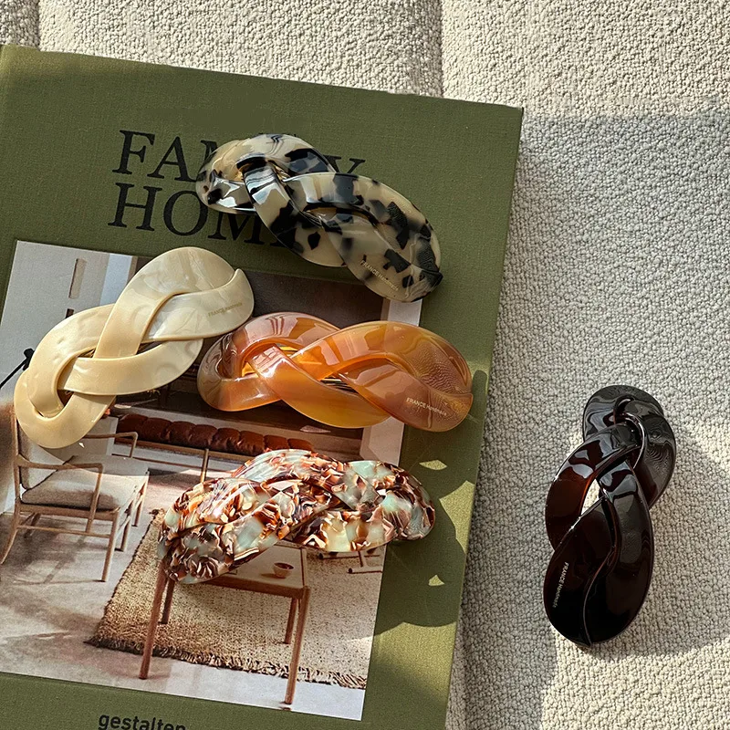South Korea Imported French Retro France Twist Weave Style Large Ponytail Spring Clip Hair Updo Clip Horizontal Clip
