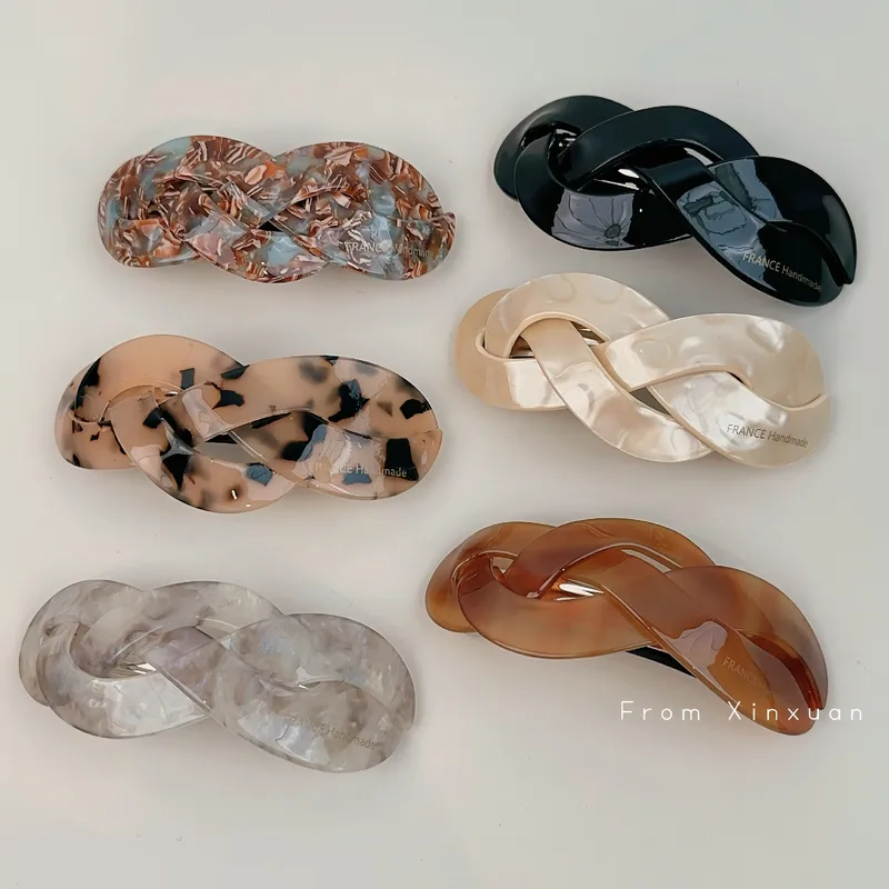 Wholesale South Korea Imported French Retro France Twist Weave Style Large Ponytail Spring Clip Hair Updo Clip Horizontal Clip