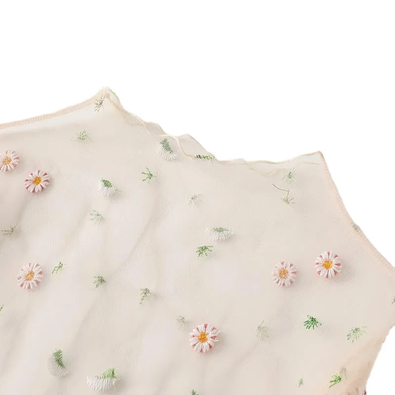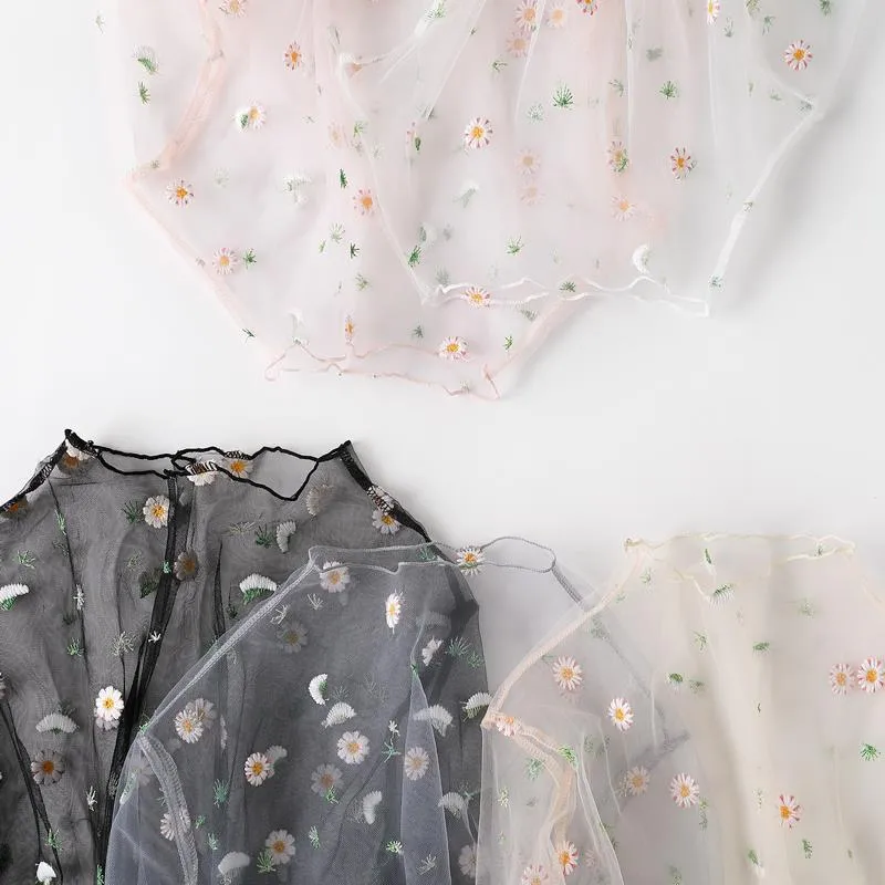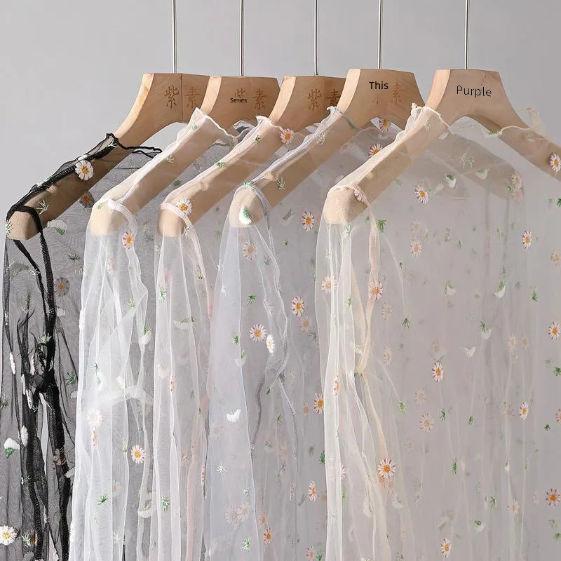 Wholesale Spring and Summer New Daisies Embroidered Base Shirt Women's Long Sleeve Embroidered Mesh Shirt Women's Top Lace Shirt