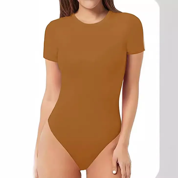 Wholesale spring and summer new solid color jumpsuit women's style sexy round neck short sleeve tight jumpsuit