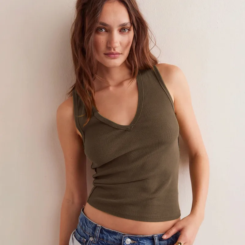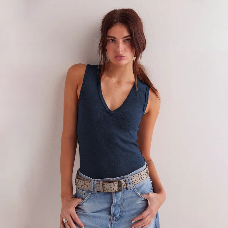 Wholesale Spring and Summer Women's New Fashion High-end Solid Color V-neck Threaded Vest Top