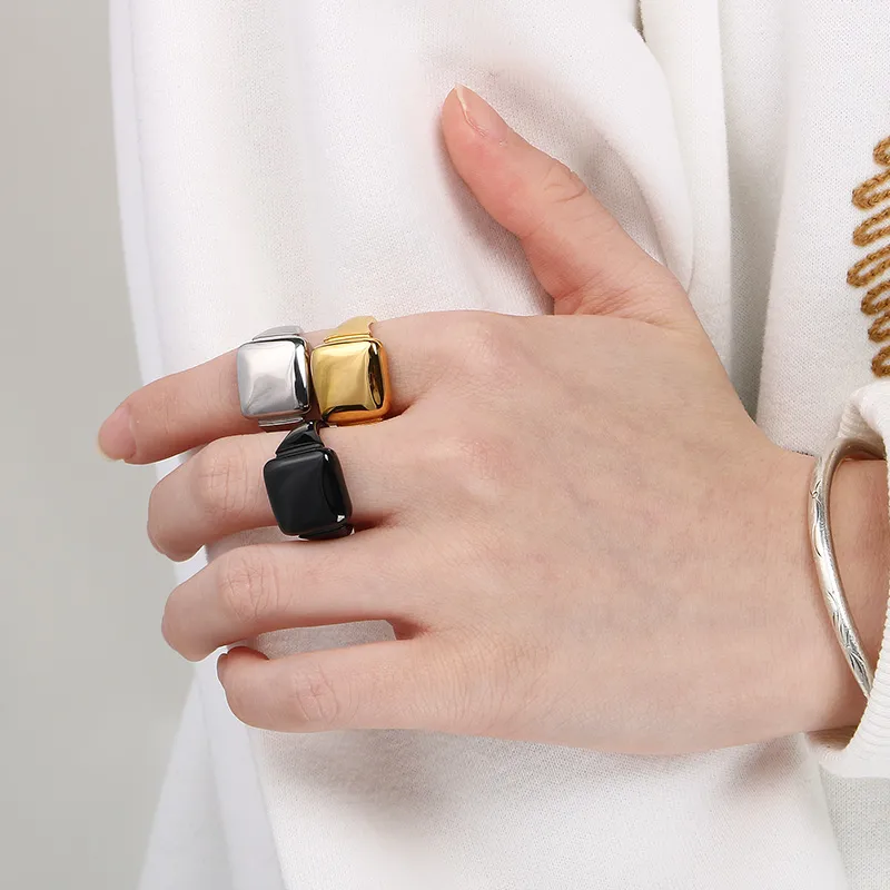 Wholesale Stainless Steel 18K Gold Plated Simple Style Square Rings