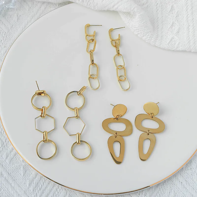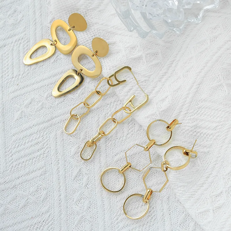 Wholesale Stainless Steel Gold-Plated Niche Geometric round Earrings