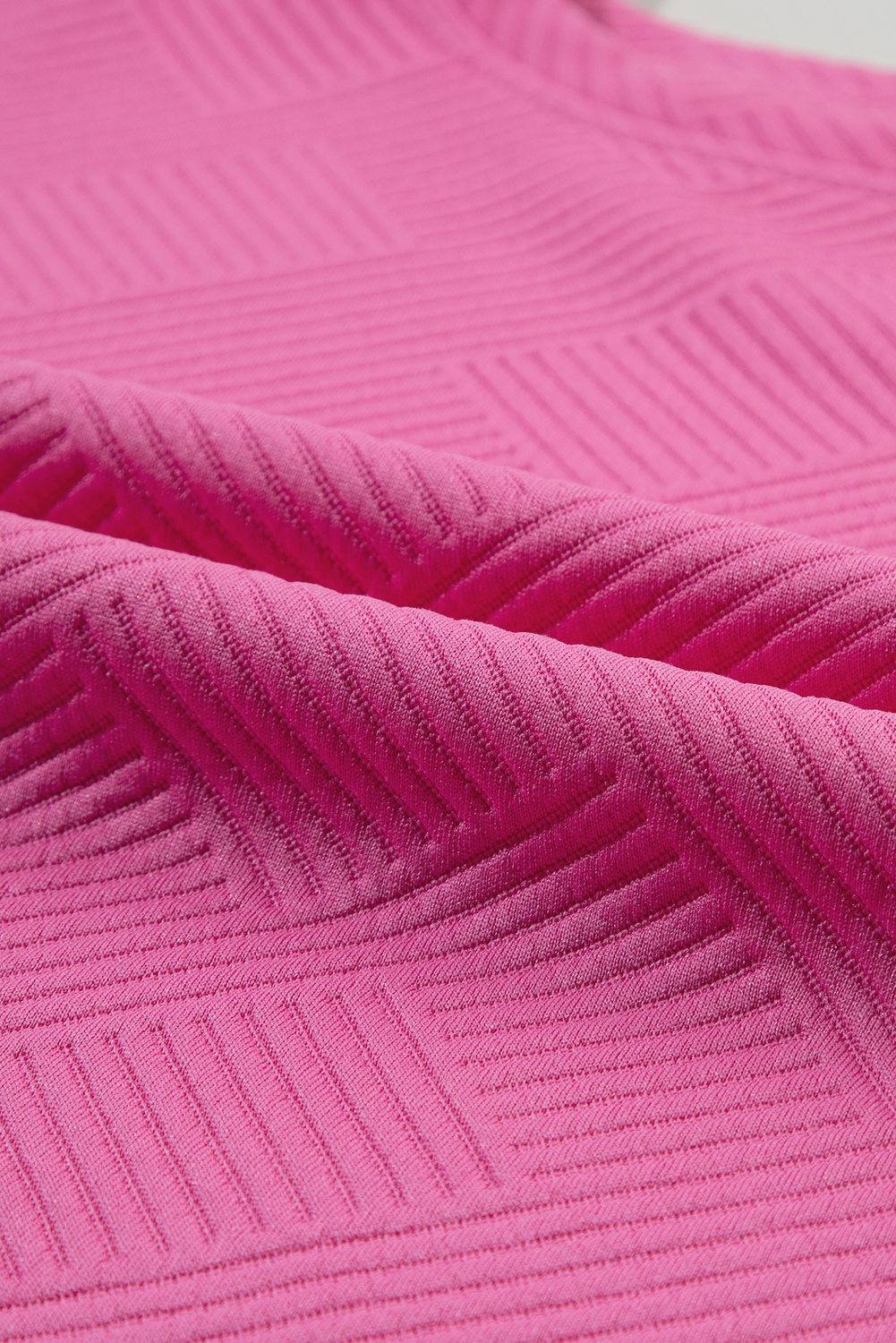 Strawberry Pink 2pcs Solid Textured Drawstring Shorts Set