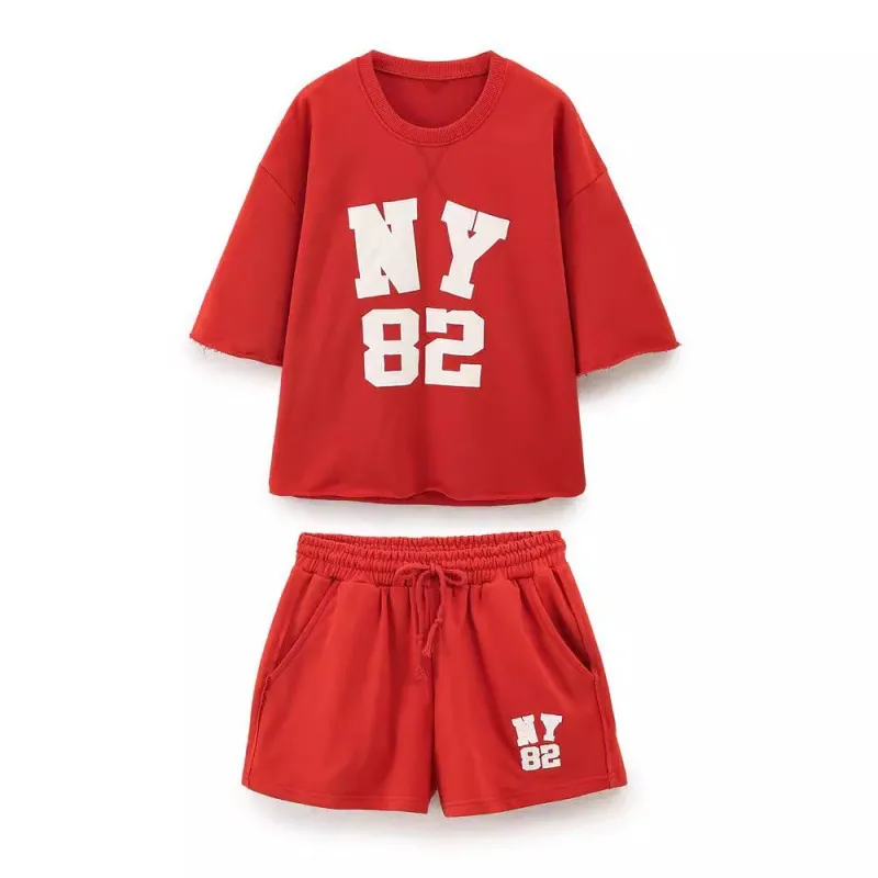 Wholesale Street Sports Women's Streetwear Letter Polyester Printing Contrast Collar Shorts Sets Shorts Sets