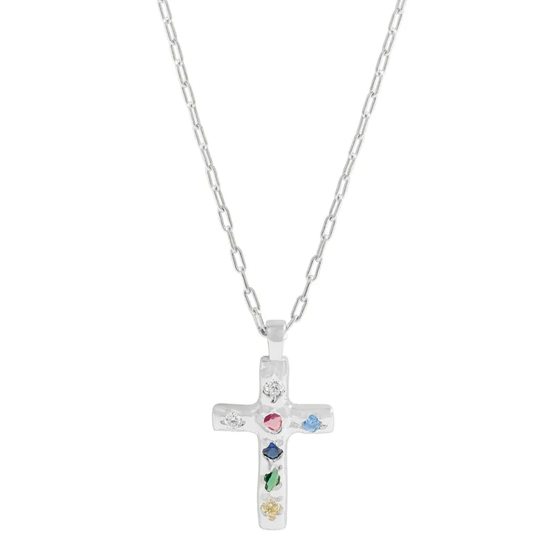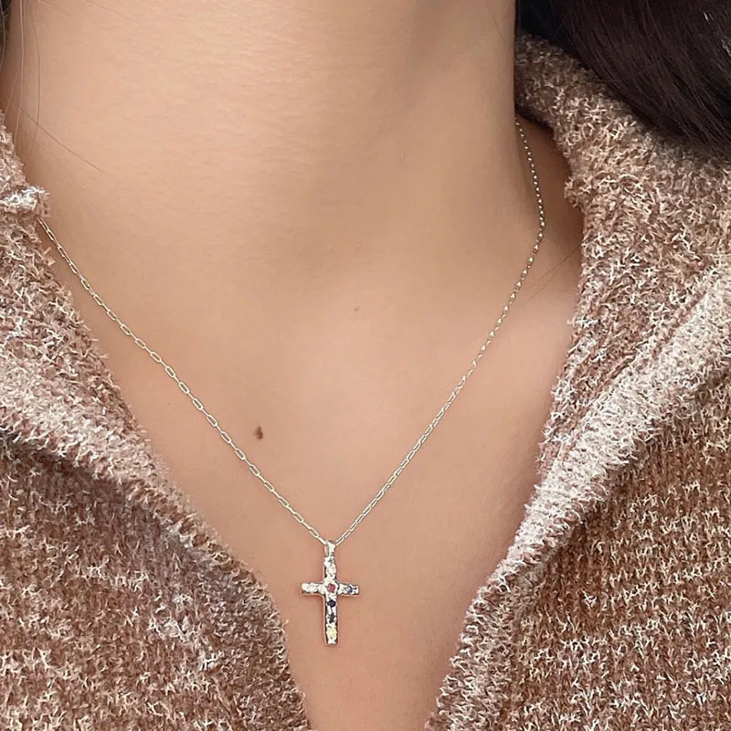 Streetwear Cross Copper Inlay Zircon Pendant Necklace