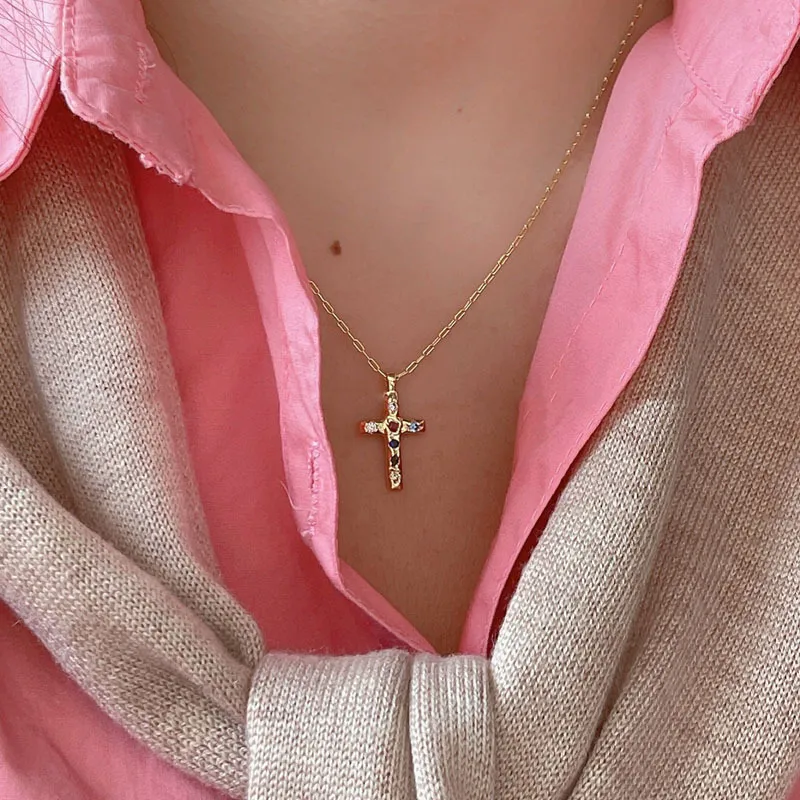 Wholesale streetwear cross copper inlay zircon pendant necklace