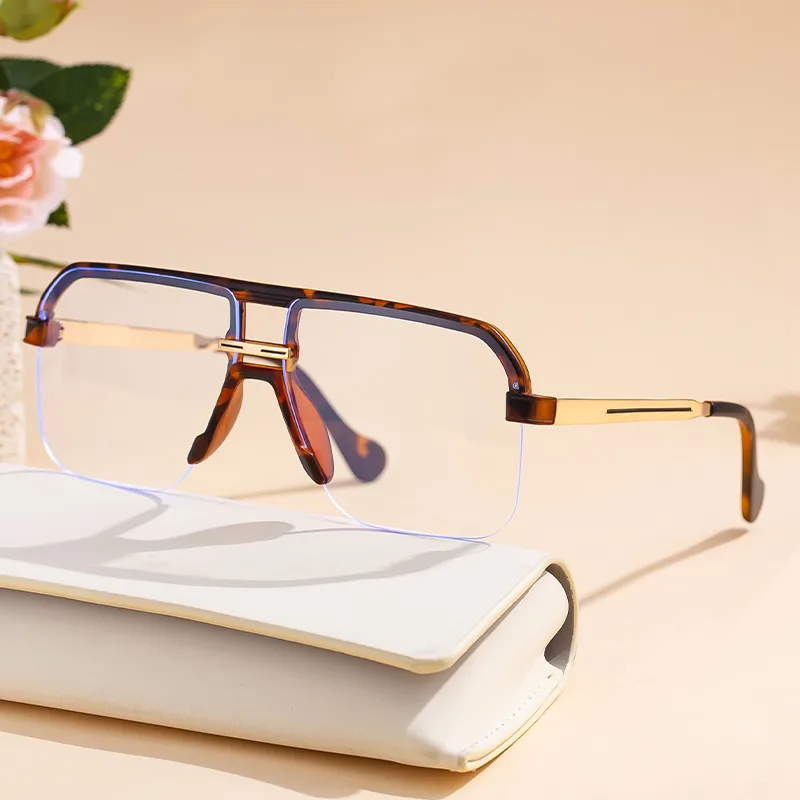 Wholesale Streetwear Geometric Pc UV400 Protection Square Half Frame Glasses