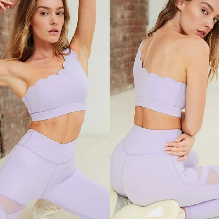 Wholesale Streetwear Sports Stripe Chemical fiber blending Nylon Irregular Collar Active Tops Vest Leggings