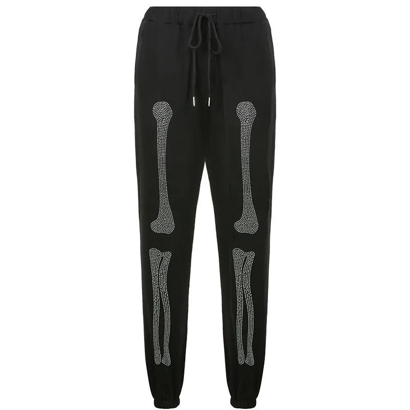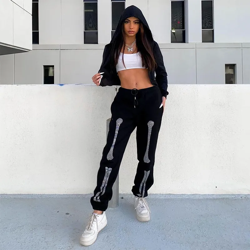 Wholesale Style Personalized Leg Bone Hot Drilling Pants Women's Autumn New High Waist Loose Tuff Pants Sports Casual Pants