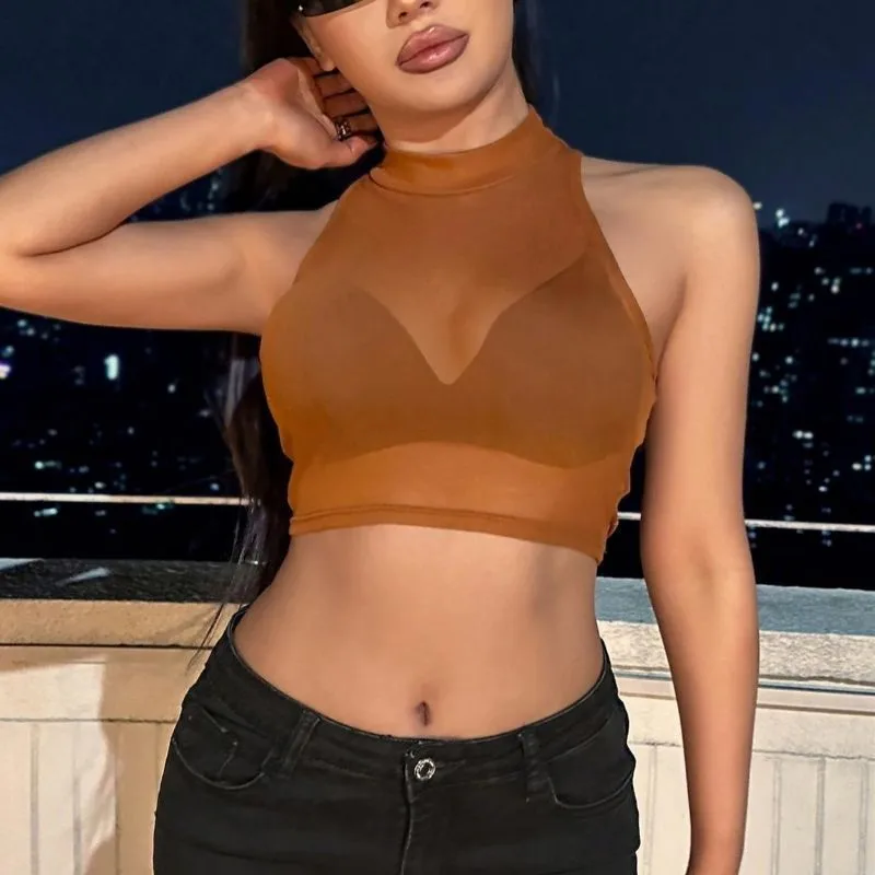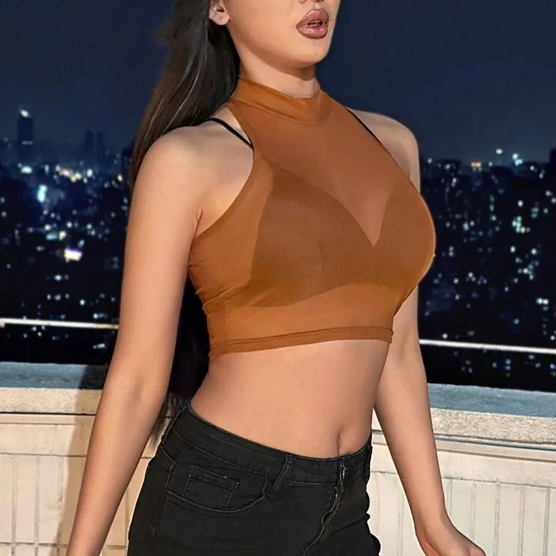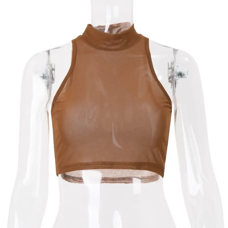 Wholesale Style Sexy Sheer Mesh Fitness Navel Hot Girl Anti-Emptied Tank-Top Sleeveless Outerwear Cover-up Women's Top