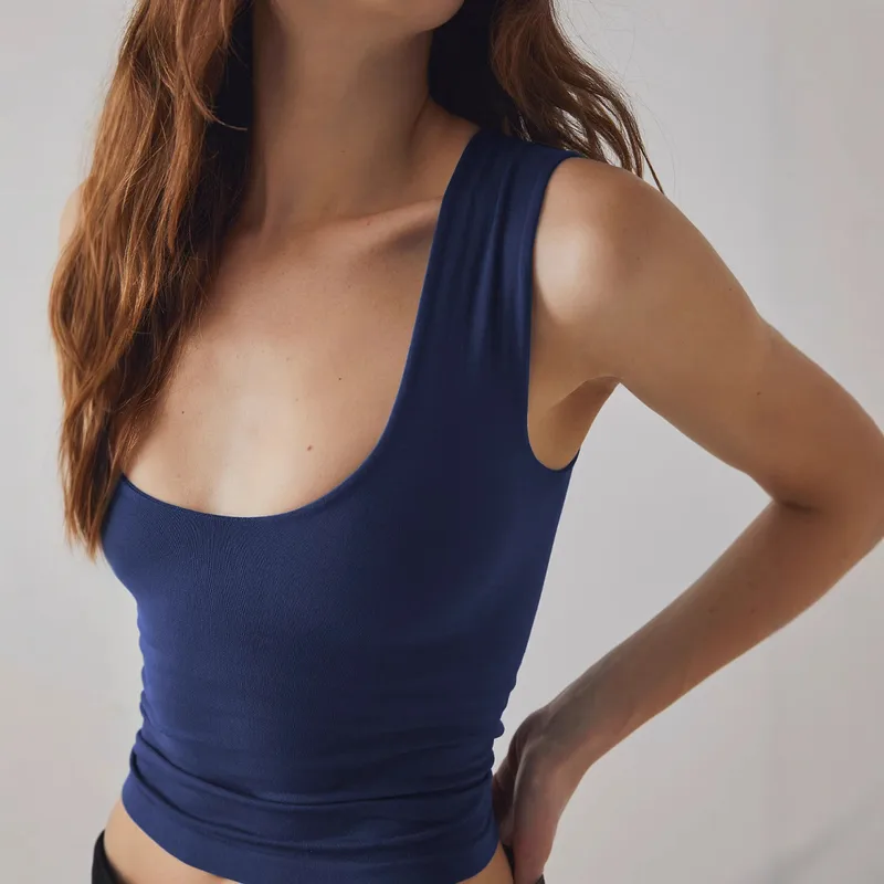 Wholesale Summer Hot Sexy Spice Y2K Fashion Double Layer Solid Color U Collar Sleeveless Short Vest Top Women