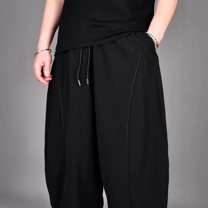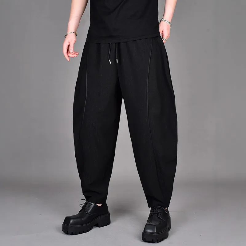 Summer New Style Men's Clothing Loose Tappered Pants Men's Trendy Ruffle Handsome Draping Bloomers Casual Harem Pants