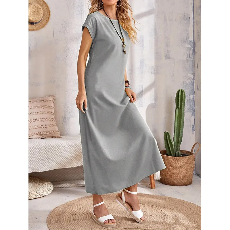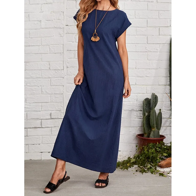 Summer New Style Simple Style Women's Crewneck Short-sleeved Loose Casual Long Solid Color Dress