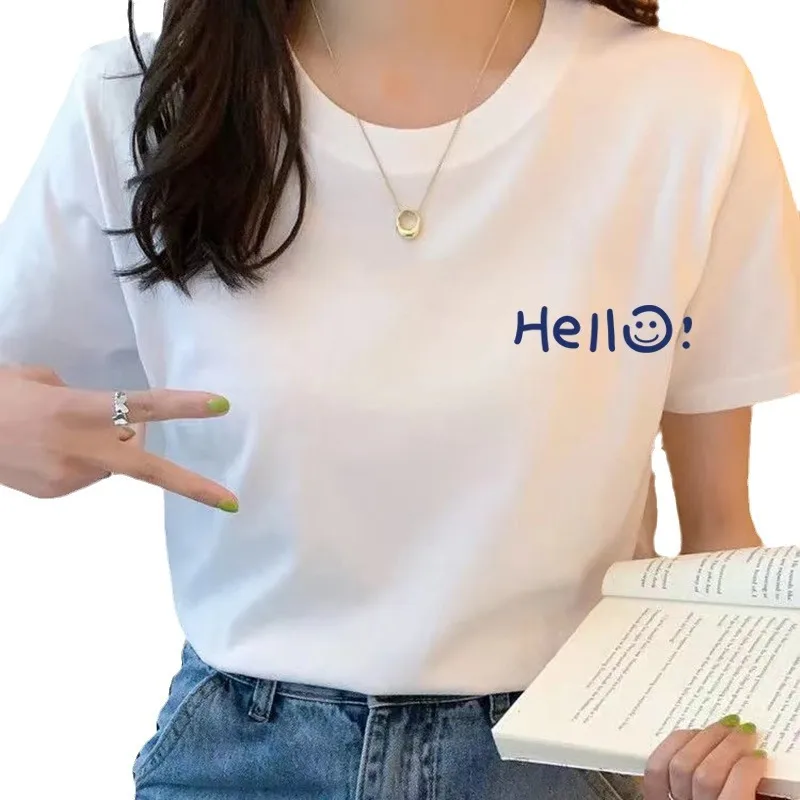 Wholesale Summer New Women's Clothing Cotton Loose Round Neck White Short-sleeved T-shirt Women's Casual Top Base Shirt Stall Batch