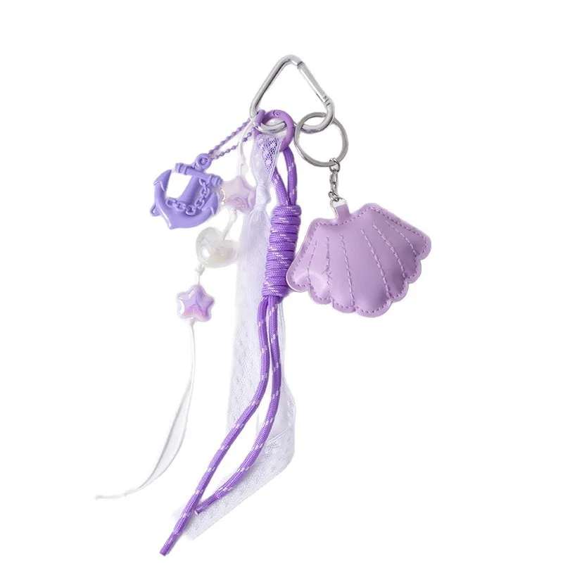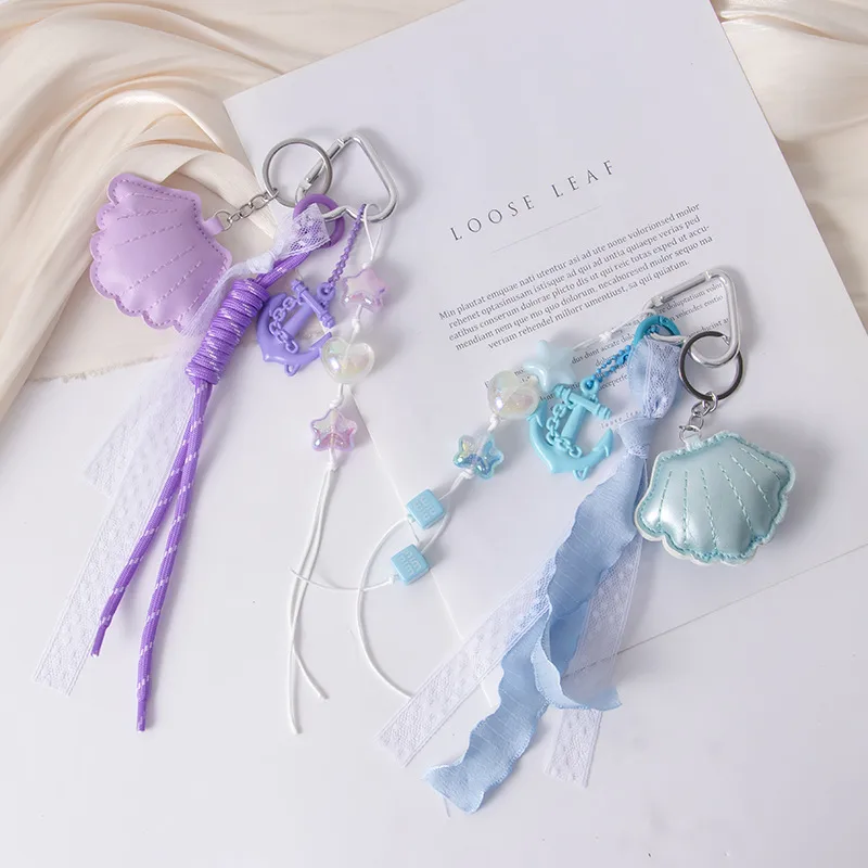 Summer Ocean Series Bag Pendant Leather Shell Keychain Acrylic Anchor Student School Bag Pendant
