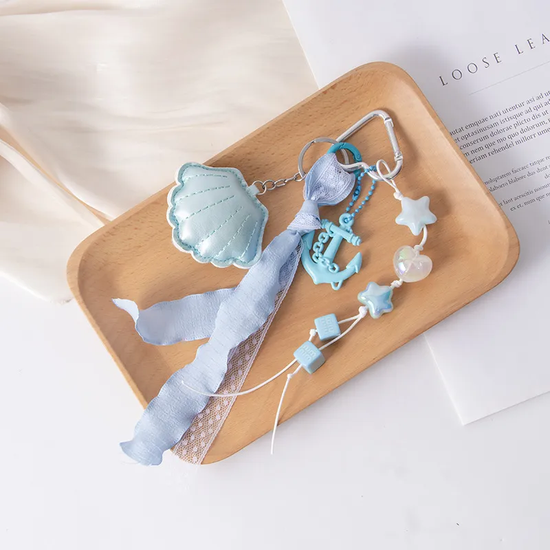 Wholesale Summer Ocean Series Bag Pendant Leather Shell Keychain Acrylic Anchor Student School Bag Pendant