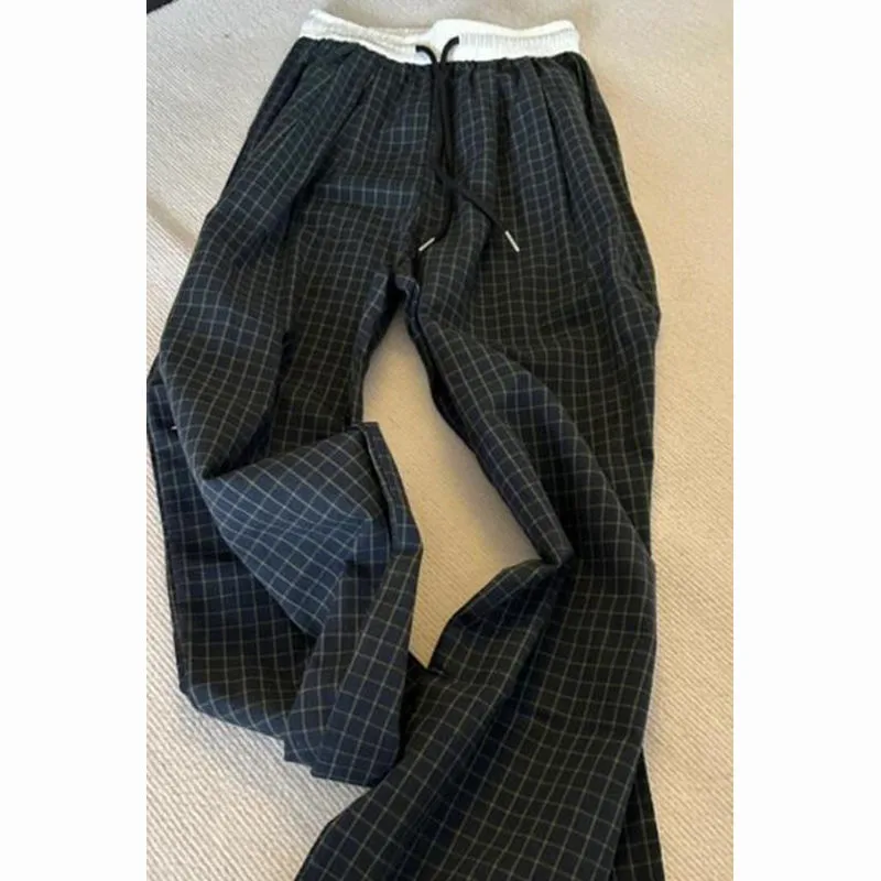 Summer Treasure Plaid Divine Pants Loose Wide Leg Casual Pants Women's Loose Tight New Drawstring Straight Walking Long Pants