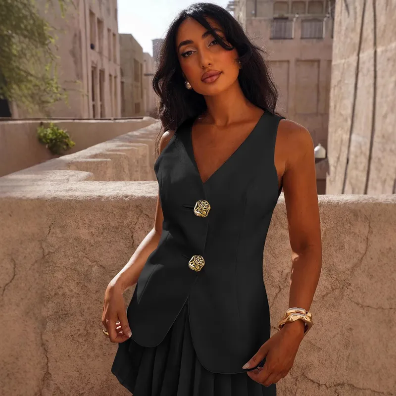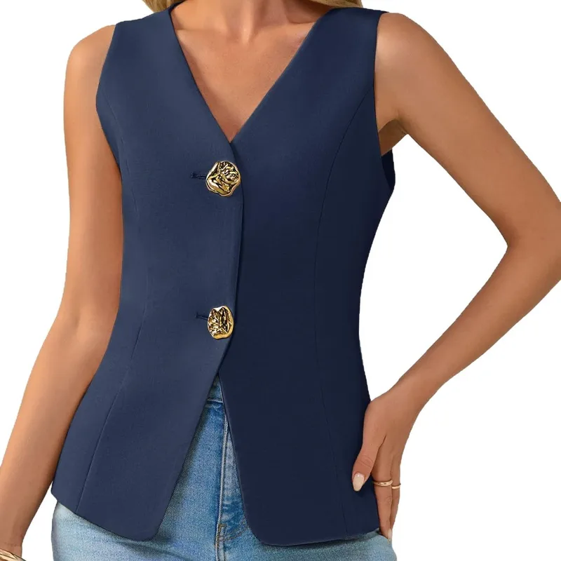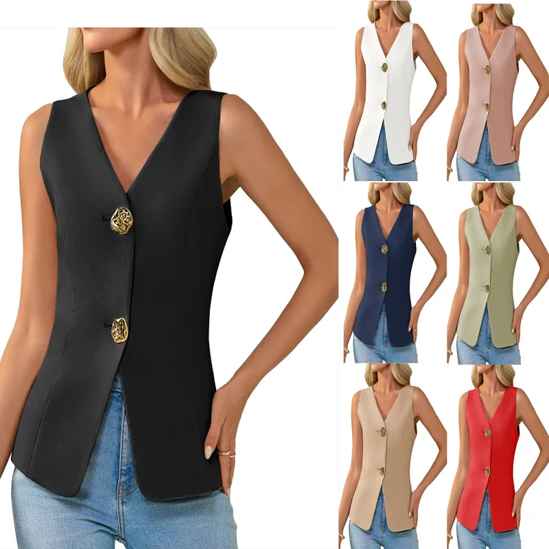 Summer V-neck Casual Button Sleeveless Suit Vest