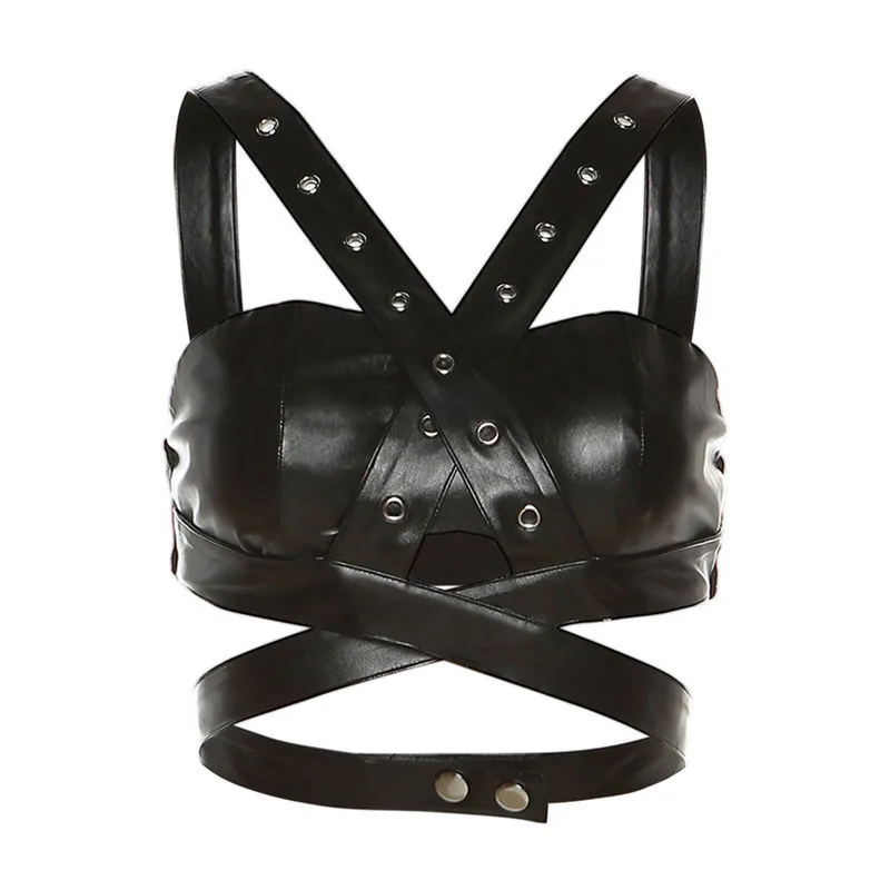 Summer Women's Sexy Cross Strap Hot Girl Motorcycle Navel Short Leather Neck Vest