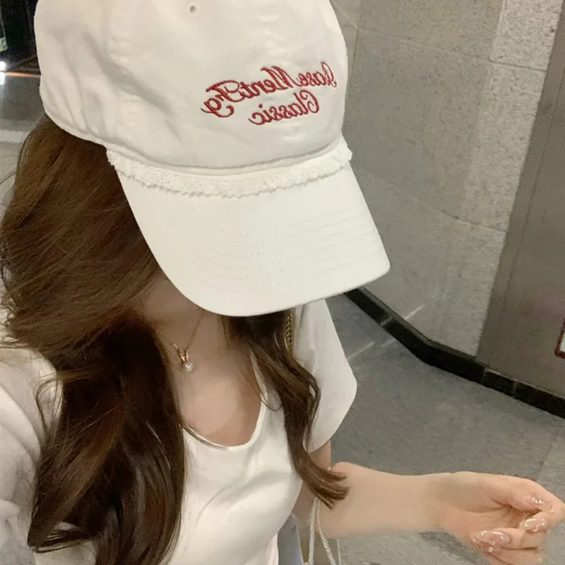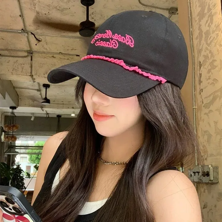 Wholesale Sweet Cool Spice Girl Style Baseball Cap Women's Summer New Style Hat Big Head Circumference Showy Face Small Sunshade Cap Black