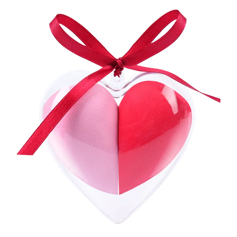 Wholesale sweet double heart hydrophilic non-latex makeup puff 2 pieces