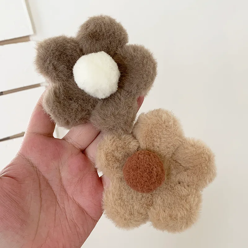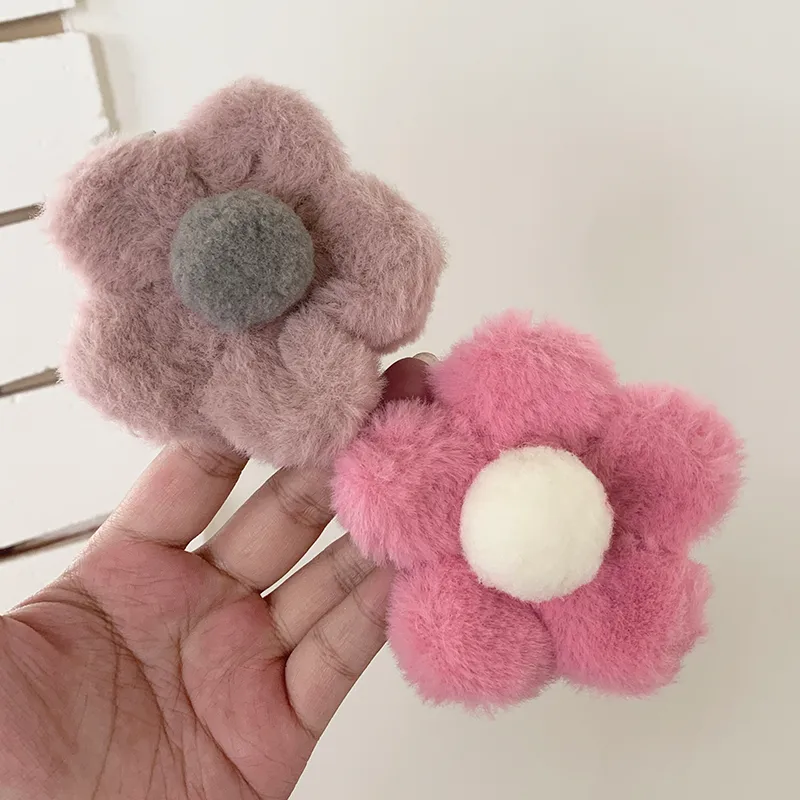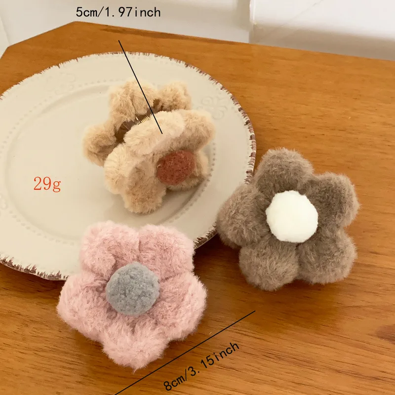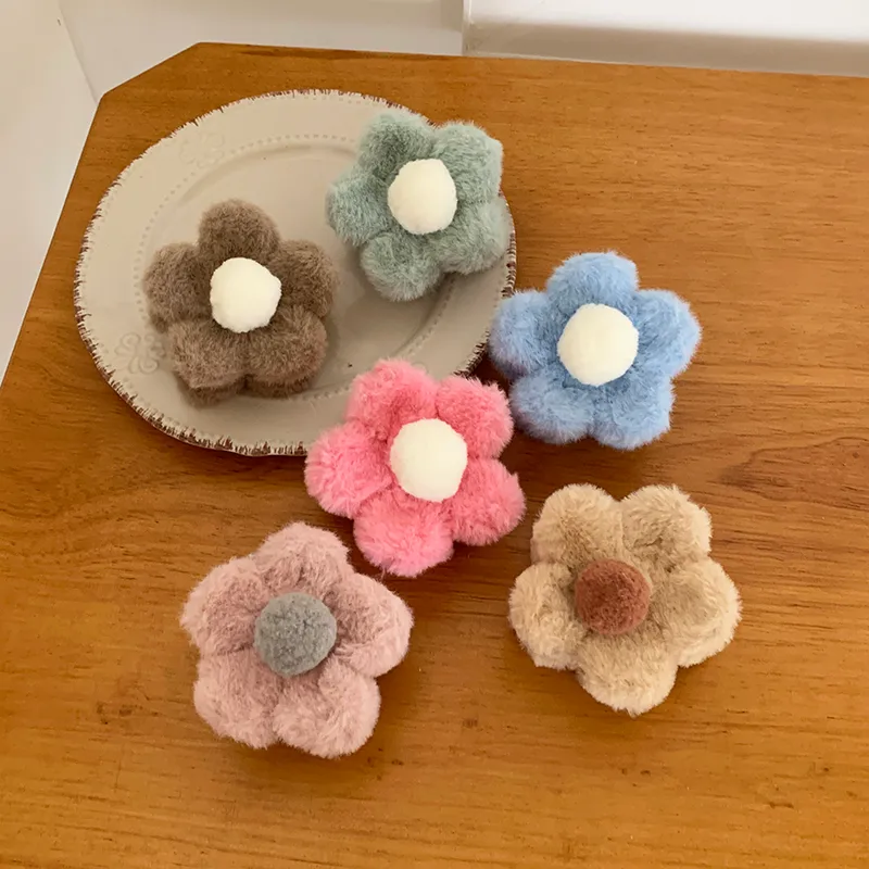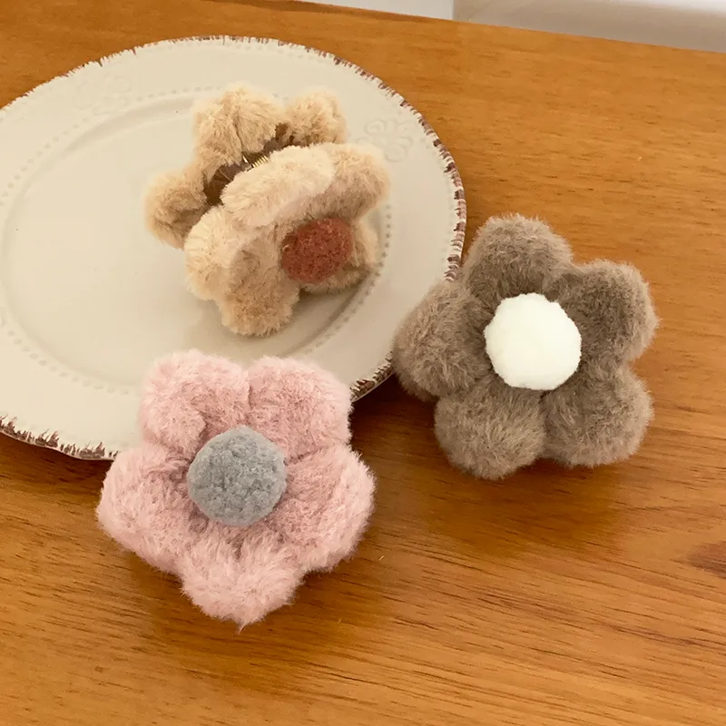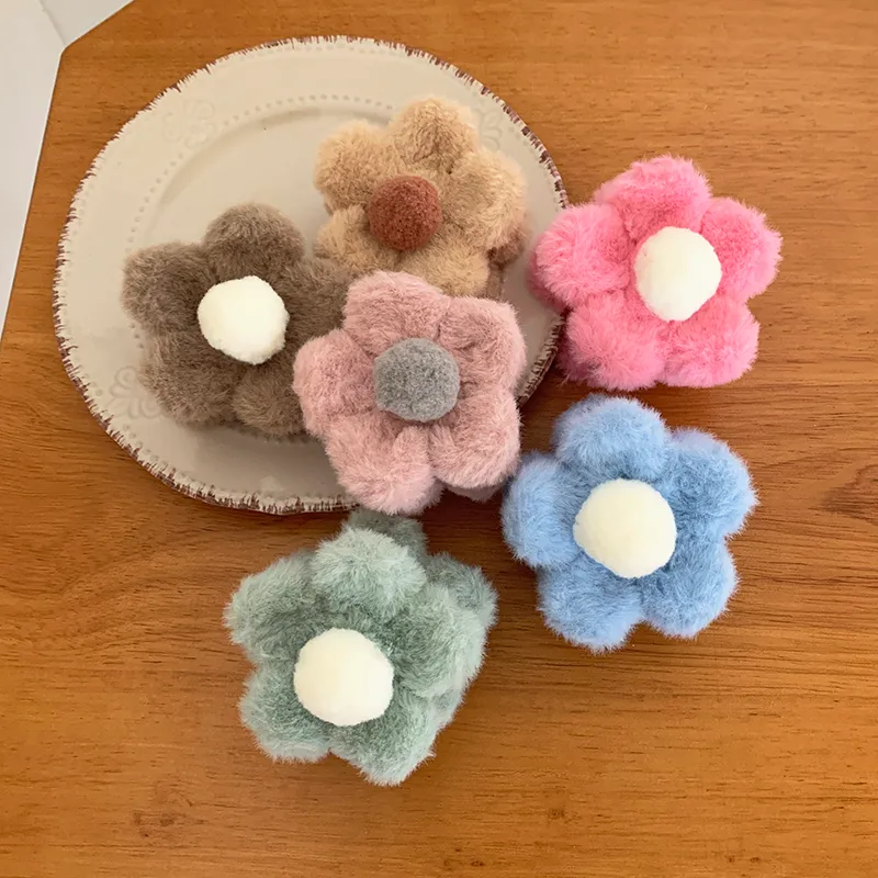 Sweet Flowers Plush Grip Cute Hair Updo Barrettes Color Matching Hair Accessories Autumn And Winter Shark Clip Hairpin Ins Korean Style Female