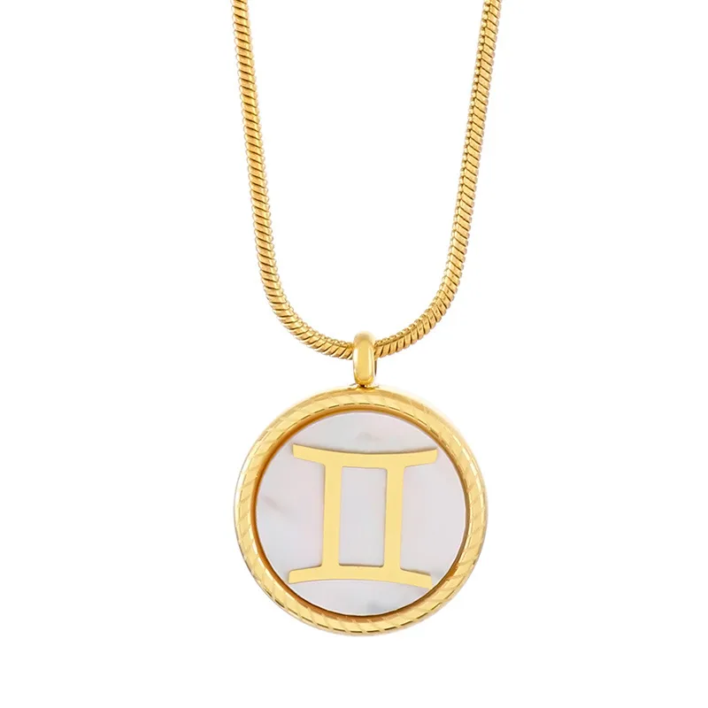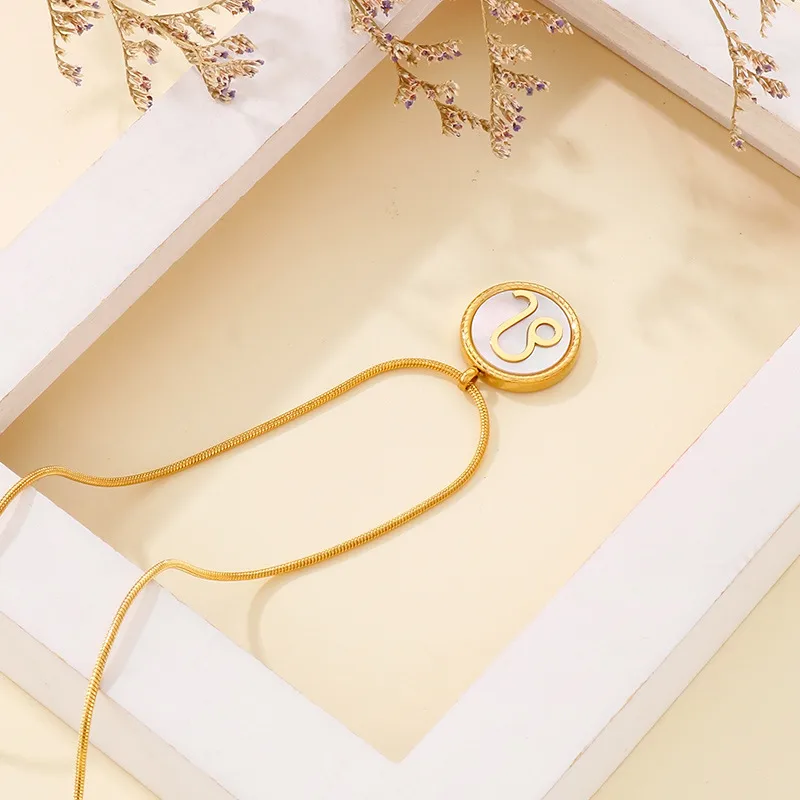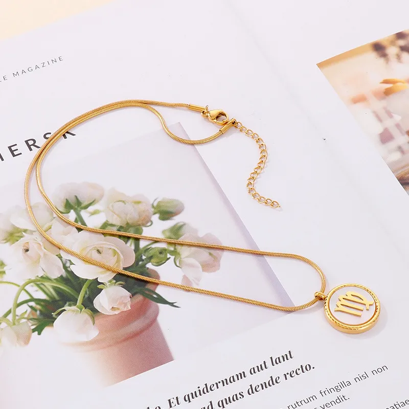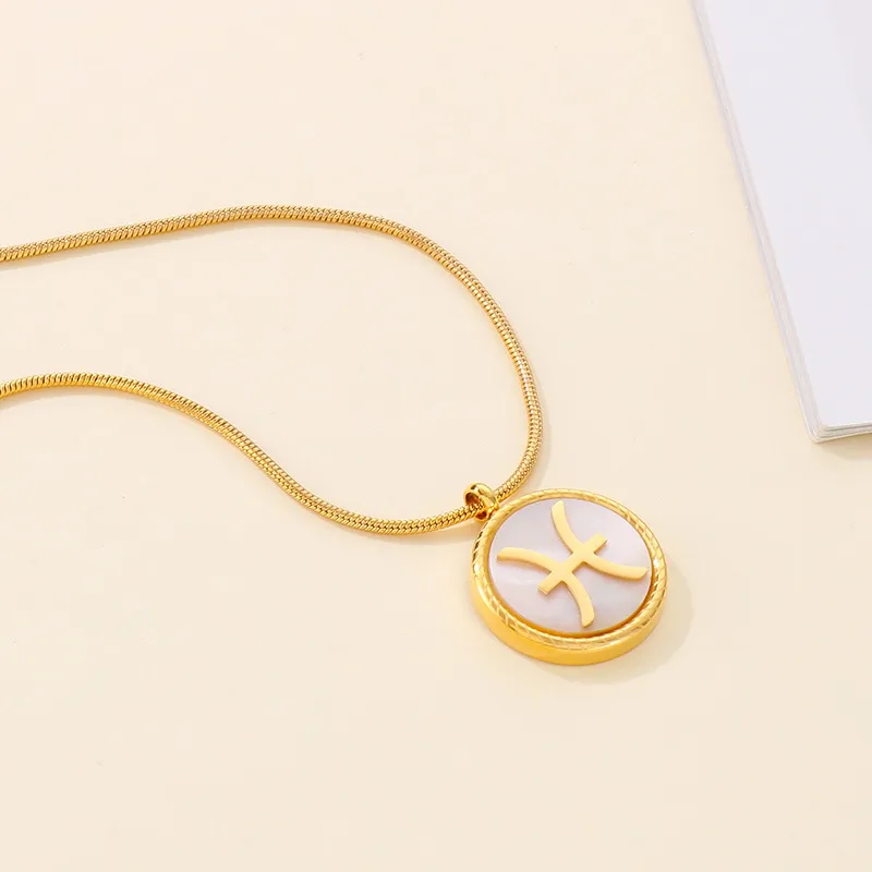 Wholesale fashion new round stainless steel shell constellation necklace wholesale nhkal672499