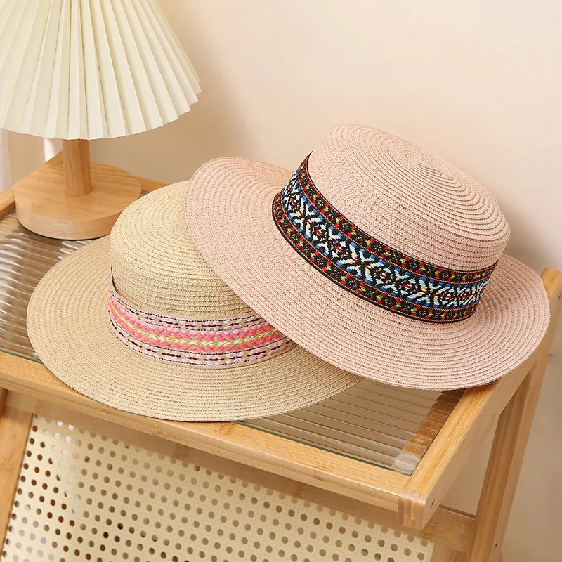 Wholesale Unisex IG Style Geometric Flat Eaves Straw Hat