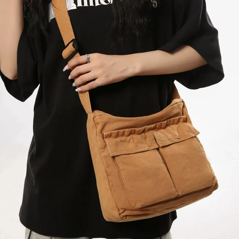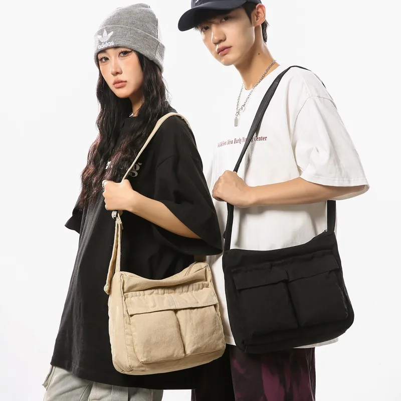 Wholesale Unisex Large Canvas Solid Color Streetwear Square Zipper Shoulder Bag