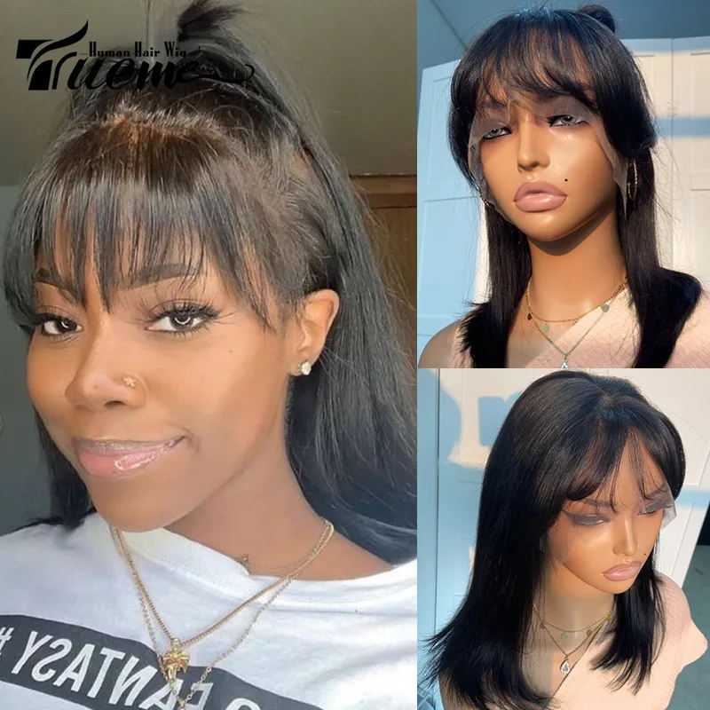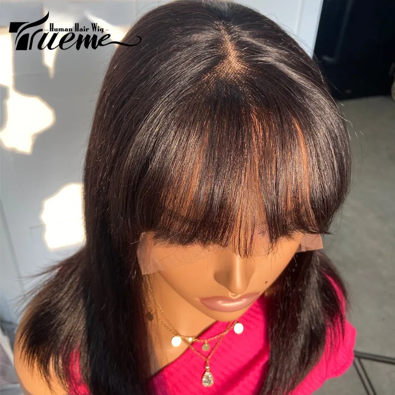 Wholesale Unisex Ruili Casual Stage Street Real Hair Homogeneous and Oblique Straight Hair Wigs