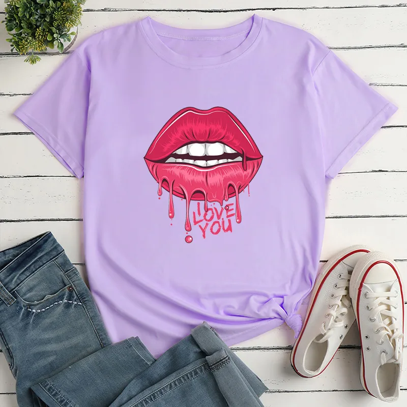 Unisex T-shirt Short Sleeve T-shirts Printing Fashion Mouth Letter