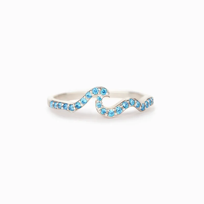 Vacation Beach Waves Sterling Silver Plating Inlay Zircon Rings