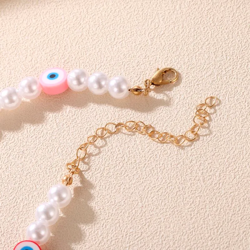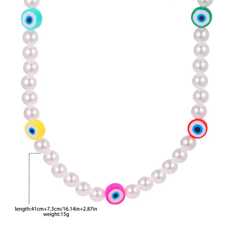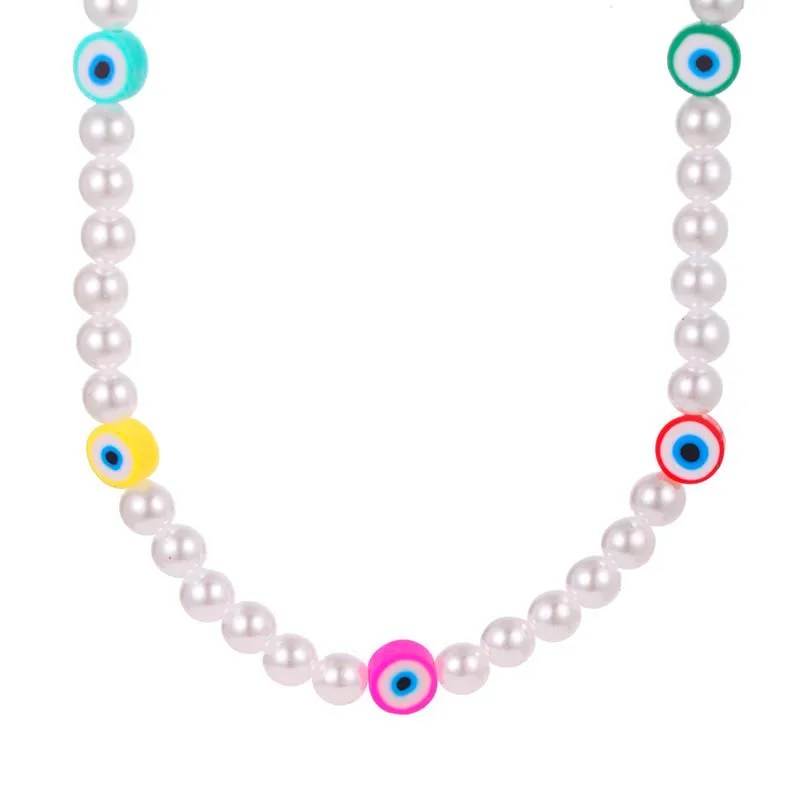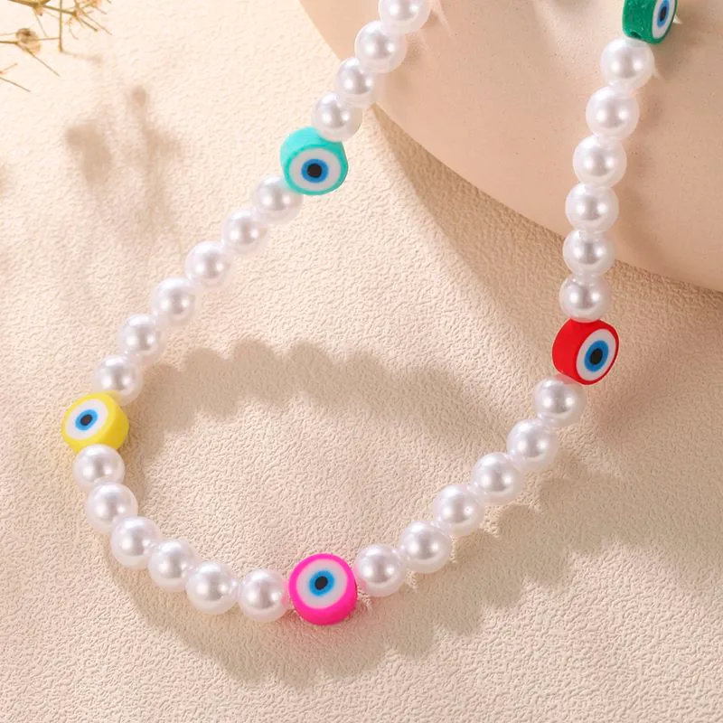 Wholesale vacation devil's eye imitation pearl beaded women's necklace