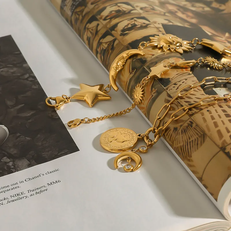 Wholesale Vacation Simple Style Classic Style Sun Star Moon 316 Stainless Steel Women's Bracelets