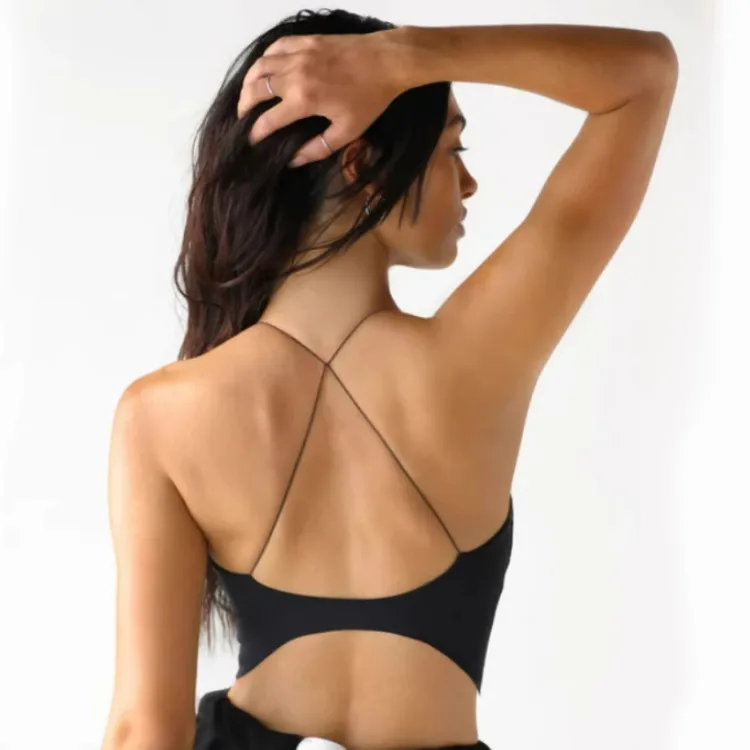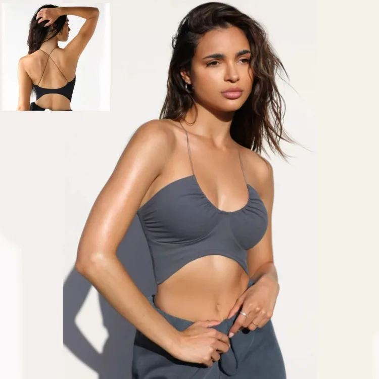 Wholesale Vacation Simple Style Solid Color Chemical fiber blending Spandex U Neck Active Tops Vest