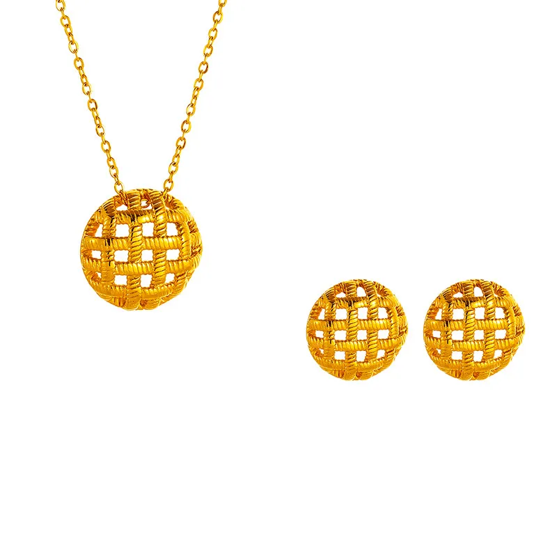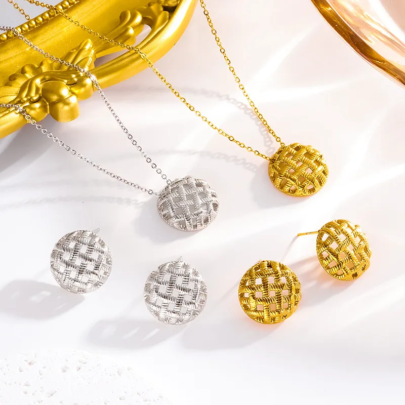 Wholesale Vacation Classic Style Solid Color 304 Stainless Steel 18K Gold Plated Women's Earrings Necklace