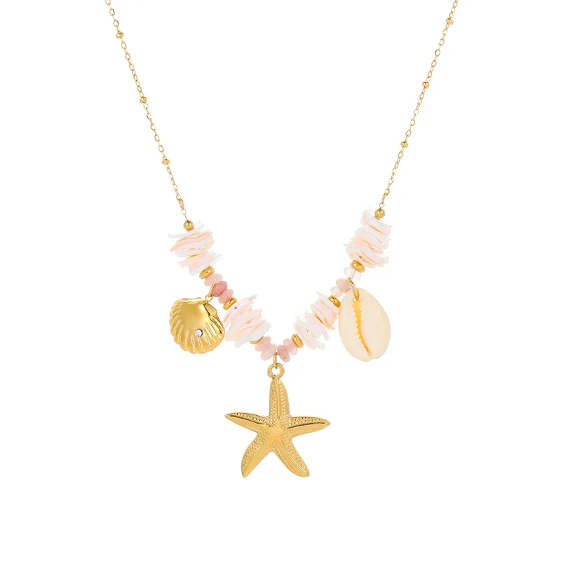 Wholesale IG Style Vacation Marine Style Starfish Shell 304 Stainless Steel Women's Pendant Necklace