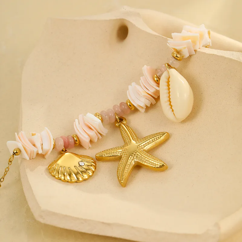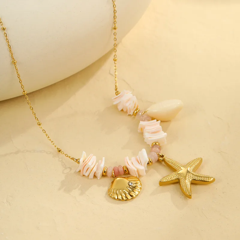 IG Style Vacation Marine Style Starfish Shell 304 Stainless Steel Women's Pendant Necklace